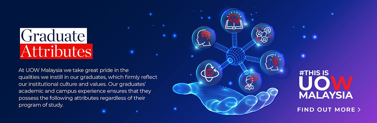 Start your journey Experience world-class facilities, superior tertiary and undergraduate programs with a global education approach to equip you for the dynamic real world. Search Quicklinks BROWSE COURSES INTERNATIONAL STUDENTS POSTGRADUATE STUDENTS HOW TO APPLY Browse programs by study area Business Built Environment Communication & Creative Arts Computing & Creative Media Engineering Hospitality, Tourism & Culinary Arts Health Science Law Pre-University Studies Professional Accountancy (ACCA & MICPA) Social Science Language Postgraduate Studies Marine BROWSE ALL PROGRAMS Welcome to UOW Malaysia INTAKE DATES & APPLICATION ❯ SCHOLARSHIPS & BURSARIES ❯ INTERNATIONAL STUDENTS ❯ STUDY ABROAD & EXCHANGE ❯ 360° VIRTUAL TOUR ❯ AWARDS & RANKINGS ❯ Upcoming events 13 December - 14 December, 2025 UOW Malaysia Open Day 10:00 am - 5:00 pm UOW Malaysia READ MORE 13 December, 2025 Education Fair (JM) 12:00 pm - 5:00 pm KSL Resort Johor Bahru City Centre READ MORE MORE EVENTS Latest News 05 December, 2025 Doctoral Student Wins Best Paper at International Finance Conference READ MORE 28 November, 2025 UOW Ranks 8th Nationally in Australian Financial Review Best Universities List READ MORE 26 November, 2025 UOW Malaysia Celebrates Class of 2025 at Dual Convocation Ceremonies READ MORE MORE NEWS
