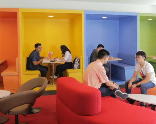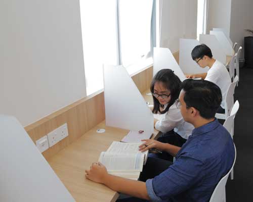 Different types of zones are designed to cater to various study styles of library users. The Interactive Zone is an open space created to foster a dynamic, collaborative environment for informal, cooperative, and creative work, as well as social interaction among library users. It is expected that conversations and discussions will frequently take place in this area. Individual study spaces are also available in this zone for Penang campuses. Group Work Normal talking voice Quiet, short phone calls The Quiet Zone is intended for library users interested in solitary and contemplative study. Individual study carrels equipped with electrical outlets for electronic device use are located here. If library users are found talking non-stop and likely disturbing others, they will be asked to move to the Interactive Zone. Individual Study Brief, discreet interaction Silent phone use Glenmarie Interactive Zone Bookdrop Learning Pods Meeting Pods Self-Check Coffee Bar Media Hub Multifunction Printer Study Lounge Quiet Zone Brainstorming Room Study Pods Individual Carrels Idea Wall Batu Kawan Interactive Zone AV Room Idea Pods Lounge Seating Area Self-Check Bookdrop Individual Carrels Multifunction Printer Multipurpose Room George Town Interactive Zone AV Room Discussion Rooms Self-Check Multifunction Printer Individual Carrels Lounge Seating Area Multipurpose Room