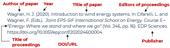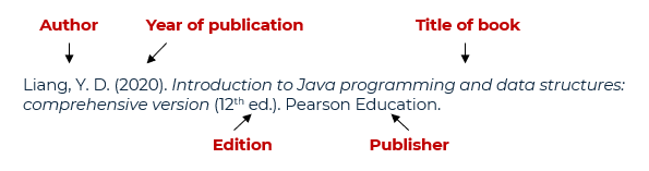 Learn how to write in-text citations in any style, create reference lists, and compile bibliographies when citing information or quotes taken from sources such as books, websites, journals, and more. EXAMPLE OF A REFERENCE LIST References Liang, Y. D. (2020). Introduction to Java programming and data structures: comprehensive version (12th ed.). Pearson Education. Kaiser, S. B. (2023). Mixing metaphors in the fiber-textile-apparel complex: fashioning the future. In Ulasewicz, C., & Hethorn, J (Eds.), Sustainable fashion: take action. (third ed., pp. 69-86). Fairchild Books. Maican, O. H. (2020). Legal aspects of global pandemics. Law Review, (01), 44-59. Wagner, H. J. (2020). Introduction to wind energy systems. In Cifarelli, L. and Wagner, F. (Eds.). Joint EPS-SIF International School on Energy. Course 5 – “Energy: Where we stand and where we go” (Vol. 246, pp. 16). EDP Sciences. https://doi.org/10.1051/epjconf/202024600004 CITATION OF A BOOK How to search for a book in WebPAC There are 2 options to search for a book in WebPAC. Search by: Author’s name Title of book CITATION OF A CHAPTER IN A BOOK How to search for a book chapter in WebPAC To obtain a book chapter in WebPAC, search for: Editor of book and not Author of chapter Title of book and not Title of chapter CITATION OF A JOURNAL ARTICLE How to search for a Journal article in WebPAC There is only ONE way to search for a journal article in WebPAC Search for TITLE of the journal CITATION OF A CONFERENCE PAPER How to search for a Conference Paper in WebPAC To search for a conference paper in WebPAC, search for Name of the Conference and not Title of paper or Author of paper. RELATED LINKS CITATION GUIDES BY STYLE UNDERSTANDING REFERENCING AND CITING REFERENCE MANAGEMENT TOOLS FAQs help you Our FAQs can help you with the directions, and help you find the right service. Or please visit the Library staff at the counter on the main floor of the Library for help.