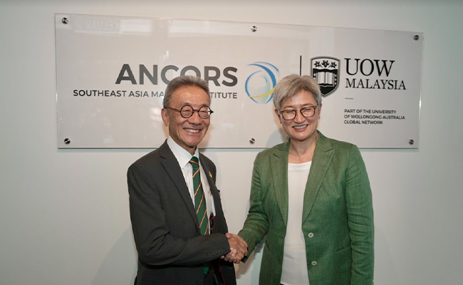 On 4 December 2024, Australia’s Minister for Foreign Affairs, Senator the Honourable Penny Wong, launched the Australian National Centre for Ocean Resources and Security (ANCORS) Southeast Asia Maritime Institute at the University of Wollongong Malaysia’s Glenmarie campus in Shah Alam. The launch event was also attended by several dignitaries, including Her Excellency Danielle Heinecke, Australian High Commissioner to Malaysia; YB Howard Lee, Member for Ipoh Timor and member of the Parliamentary Special Select Committee for International Relations and International Trade; Datin Paduka Nur Ashikin Mohd Taib, Director-General of Maritime Affairs at the Ministry of Foreign Affairs; Dr Camille Goodman, Associate Professor and Head of Postgraduate Studies at ANCORS; YBhg Datuk Seri (Dr) Michael Yam Kong Choy SMW DSNS, Chancellor of UOW Malaysia; and YBhg Dato’ Mohammad Medan Abdullah, Chairman of the UOW Malaysia Board of Governors.