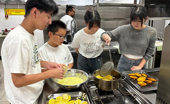 First, eight Shoyo High School students from Japan participated in an enriching mobility program themed “Taste of Malaysia.” Guided by Chef Eddie, they engaged in a hands-on cooking session where they learned to make traditional Malaysian snacks: cucur udang (prawn fritters) and pisang goreng (banana fritters). This interactive workshop not only improved their culinary skills but also deepened their appreciation for Malaysia’s vibrant food culture. As the students mixed batter and fried their creations, they shared stories from their own culinary traditions, fostering cultural exchange and building lasting friendships. The successful program culminated in a delightful tasting of their snacks, with many expressing excitements about recreating the dishes at home.