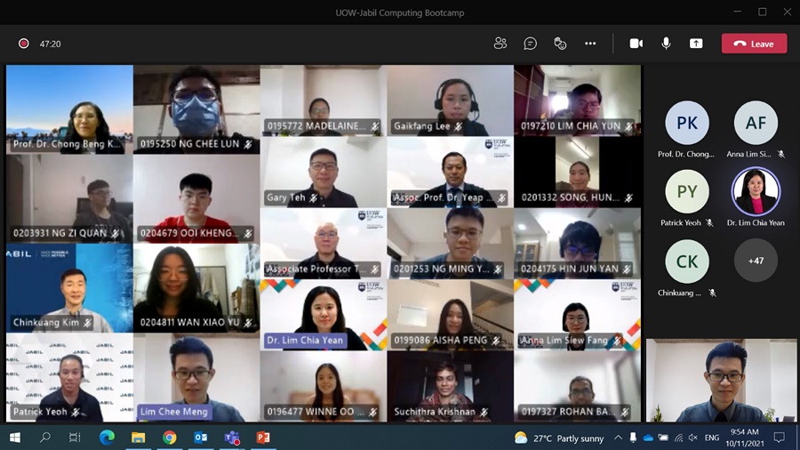 The computing degree students at UOW Malaysia KDU Penang University College were introduced to career opportunities at Jabil Global Business Shared Services (GBS) in tandem with key technological shifts, at a recent virtual UOW – Jabil Bootcamp. The virtual bootcamp, designed to foster industry-academic relationships with the express purpose of preparing talents for a global market, was led by Jabil’s senior leadership in partnership with the computing faculty members.