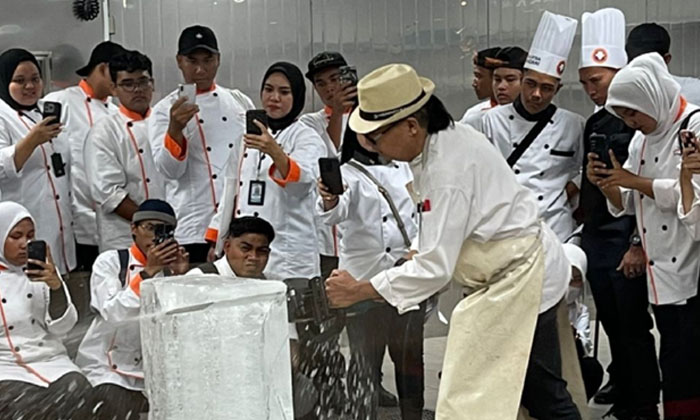 Soon, the ice-carving demonstration by UOW Malaysia’s Executive Chef Hamir became the highlight of the visit as he transformed a block of ice into a piece of art, leaving the audience in awe of his mastery.