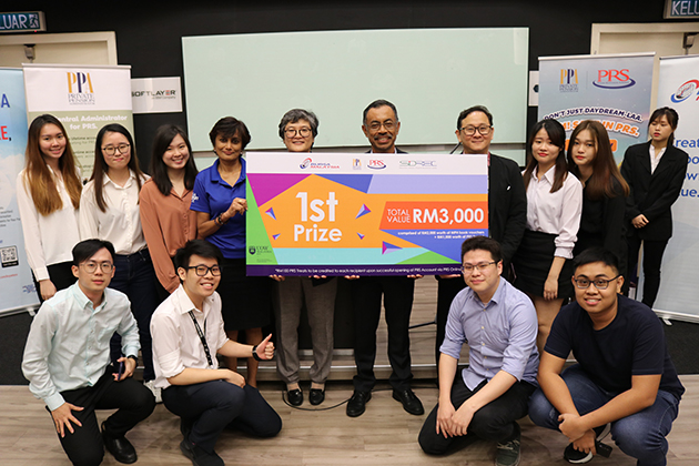 Out of 13 teams in the class, six were shortlisted to present their ideas to a panel of judges comprising A. A. Deepa, Vice-President of Investor & Channel Management for Securities Market, Bursa Malaysia, Husaini Hussin, CEO of PPA, Hong Siew Lai, Acting CEO of SIDREC, and Loo Chong Hang, Head of UOW Malaysia KDU’s SCCA. With a compelling proposal and an engaging video, three teams were selected and walked away with prizes worth a total of RM9, 000 sponsored by Bursa Malaysia, SIDREC and PPA.