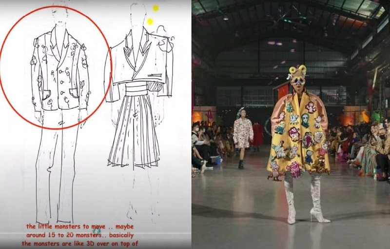From concept to design: the dancing monster icons on a dress.