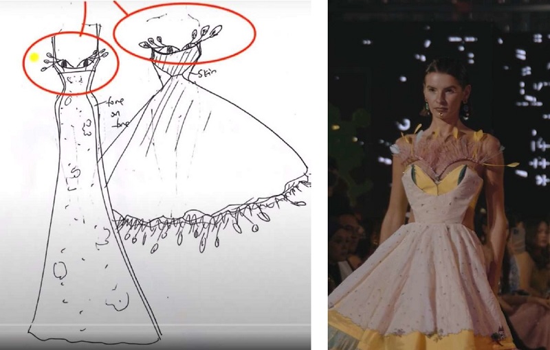 From concept to design: Waving panels on a dress.