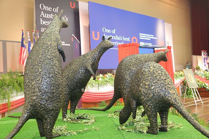 A sample of Australian fauna was also introduced to the urban Glenmarie campus in the form of a set of statues depicting five wallabies, presented as a gift from UOW Australia.
