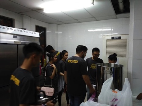 UOW Malaysia KDU Volunteers preparing drinks before distribution.