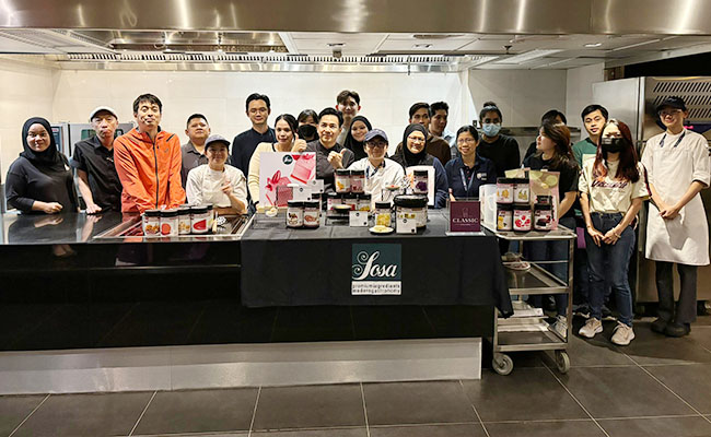 The workshop also showcased Sosa’s premium ingredients, highlighting their unique properties and advantages. Chef Ng demonstrated his approach to developing new and creative desserts, encouraging participants to experiment and push the boundaries of traditional pastry-making. The day included a demonstration of three distinct desserts: reversed Spherification, salted lime & magnum and bejewelled nectar, each highlighting different elements of Sosa ingredients and advanced techniques.