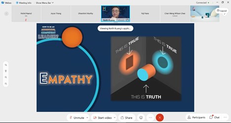 Mr Syafie, Senior UI/UX Designer of Malaysian Global Innovation & Creativity Centre (MaGIC) kicked off the session on the third day by sharing on Design Thinking in Leadership. Mr Syafie presented his talk in a fun, engaging and interactive workshop session using the Miro platform. According to this dynamic speaker, “Design is not just how things look but also how things work. Design Thinking is never a one-time process, it is a lifetime habit.”