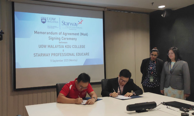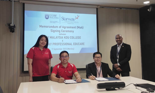 UOW Malaysia KDU College and Starway Professional Educare signed a Memorandum of Agreement (MOA) to formalise their collaboration on Sept 11, 2023 in Glenmarie campus, Shah Alam.