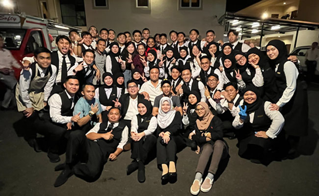 UOW Malaysia School of Hospitality, Tourism & Culinary Arts (SHTCA) recently had an extraordinary opportunity to participate in the prestigious Brunei Royal Wedding of Prince Mateen and Dayang Anisha. A delegation comprising 17 students and 2 dedicated lecturers embarked on a remarkable journey to serve at the guest houses and the royal wedding ceremony held at the palace from January 7 to January 19, 2024.