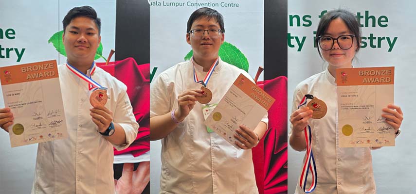 4 Bronze Medals – Chef of Nation (Chef Alex Chia Sheng Da, pictured under Silver Medal category), Individual Hot Cooking – Duck (Low Qi Man and Sim Zhi Wei), and Salmon (Joelle Tay Xin-E)