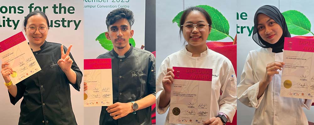 The aroma of creativity and competition filled the Kuala Lumpur Convention Centre from 23 to 26 September 2025, as UOW Malaysia’s School of Hospitality, Tourism & Culinary Arts (SHTCA) from the Glenmarie Campus made an impressive mark at Food & Hotel Malaysia (FHM) 2025 and Culinaire Malaysia 2025.