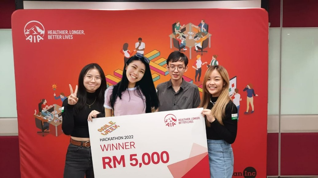 Bachelor of Computer Science (Hons) student, Lai Min Jia bagged the first prize of RM5000 at the recently held AIA hackathon 2022 from 27th – 28th June 2022. Min Jia’s team beat off 7 other teams to showcase an innovative and creative solution to solve the business challenge around sustainability and the future of insurance industry.
