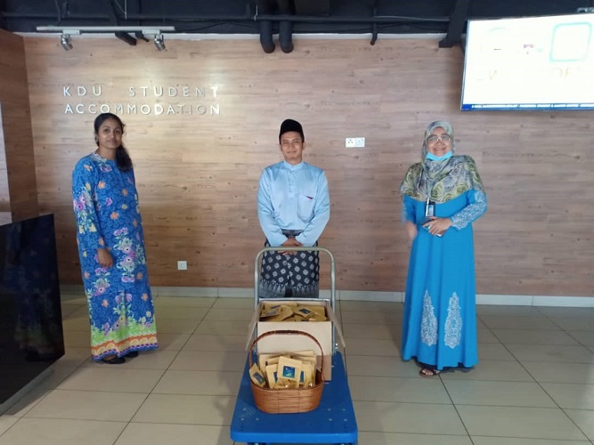 Student and Alumni Centre (SAC) of UOW Malaysia KDU has embarked on an initiative to enhance international students experience for Hari Raya Aidilfitri celebration in Malaysia. A special event to distribute Raya cookies was planned earlier by the Student and Alumni Centre to all students who stayed at UOW Malaysia KDU Accommodation during this Raya festivals. It was organised on the 24th May 2020, was the first day of Hari Raya Aidilfitri.