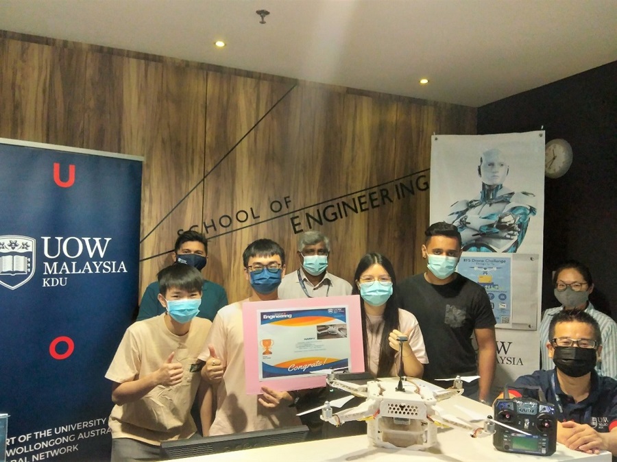 Four of UOW Malaysia KDU’s Engineering students recently participated within the RFS Drone Challenge, with the drone they designed and built securing third place within a competitive field of participants drawn from prominent universities across Malaysia. The RFS Drone Challenge was a challenge to create a light-weight drone solution for delivery service companies, using a 3D printed light-weight quadcopter with the ability to quickly and safely retrieve/deliver parcels. Participants were tasked with finding a solution that would increase parcel weight capacity and/or increase the flight time of the drone. The year-long competition was organized by RF Station and culminated within the final presentation and drone flight test on 24th April 2021. The following organizations partnered with RF Station in bringing this exciting challenge to Malaysian tertiary students: Dassault Systemes, the Institution of Engineers Malaysia (IEM), Asia Drone Technical Academy, University of Nottingham, Mawea Industries, SG Education Group, and EVOLVE3D.