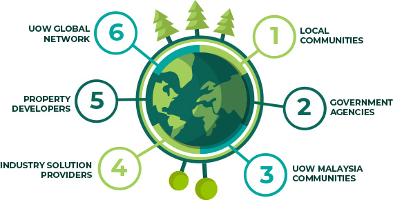 About the Sustainability Living Lab (SLL) The UOW Malaysia Sustainability Living Lab (SLL) is a transformative initiative that turns sustainability ambitions into real-world impact. It reimagines the campus as a living, learning, and innovation hub where sustainable living is not only studied but also practiced. As a dynamic platform, the SLL integrates sustainability into every aspect of campus life through hands-on projects, cutting-edge research, and community engagement. Rooted in environmental stewardship, innovation, and collaboration, it functions as a real-world testing ground for sustainable practices. By uniting academia, industry, government, and the community through the Quadruple Helix model, the SLL fosters the co-creation of impactful solutions. Through interdisciplinary initiatives, active student involvement, and global partnerships, it reflects UOW Malaysia’s unwavering commitment to sustainability locally and beyond. The SLL is currently based at the Glenmarie Campus and will be further replicated at the Penang Campus and Utropolis Marketplace, extending its reach and impact across UOW Malaysia’s network. Novelty and Value Proposition of UOW Malaysia’s Sustainability Living Lab 1QUADRUPLE-HELIX INVOLVEMENTUnique collaboration model involving academia, industry, community, and government. Engages with a diverse range of stakeholders, industry developers, green solution providers, and policymakers.1Comprehensive Approach to SustainabilityBringing sustainability into all parts of campus life — from daily operations to research and community work — with a focus on real-world impact and practical solutions.1Emphasis on Innovation and TechnologyUtilisation of IoT smart systems, shared labs, and analytics to enhance sustainability efforts. Living lab spaces dedicated to conducting sustainability testing and demonstrating innovative solutions.1Long-Term Vision and ScalabilityCommitment to achieving the 2050 net zero goal with ongoing projects and initiatives. Positioning the living lab to serve as a model for other institutions and communities in long-term sustainability practices.1Immediate and Long-Term ImpactMix of short- and long-term projects to deliver quick results and lasting impact — including energy saving, waste reduction, renewable energy, and water recycling.1International UOW PartnersCollaboration across UOW’s global network, including campuses in Australia, Dubai, Hong Kong, and India, to share best practices and drive sustainability through joint initiatives.1Community-based ProjectsInitiatives involving Utropolis Residence and outreach programs with the wider community to promote sustainable living and engagement. Key Pillars Education and Awareness Educating and engaging the community on sustainable practices. Green Talent Development Developing green professionals, entrepreneurs, and future-ready talent to lead sustainable change. Community Collaboration Building networks and partnerships to drive sustainable success. R&D and Sustainable Innovation Driving growth through research, development, and sustainability-focused innovations. Our Stakeholders Our Partners Looking to collaborate? We welcome partners who share our commitment to sustainability.Criteria for Selection: Alignment with Sustainability Vision – Commitment to Sustainability, Corporate Sustainability Goals Expertise and Contribution – Relevant Expertise, Contribution to Research and Development, Resource Sharing Financial Commitment – Initial Investment, Ongoing Support Engagement and Participation – Active Involvement, Collaboration Long-term Partnership – Commitment to Long-term Goals, Impact Measurement Innovation and Leadership – Innovation Mindset, Thought Leadership Brand and Community Engagement – Reputation in Sustainability, Community Involvement The Sustainability Living Lab is not just a project; it is a strategic initiative that aligns with UOW Malaysia’s mission to foster innovation, community engagement, and academic excellence. Through the SLL, UOW Malaysia positions itself as a national and global leader in sustainability, offering unmatched value to students, partners, and the broader community. Call for action “Let’s not just talk about sustainability…let’s live it.” Join us in turning ambition into action at the UOW Malaysia Sustainability Living Lab. Contact us: Dr. Nishata Royan Email: [email protected] Tel: +603 – 5565 0552