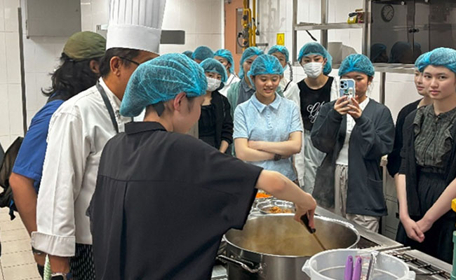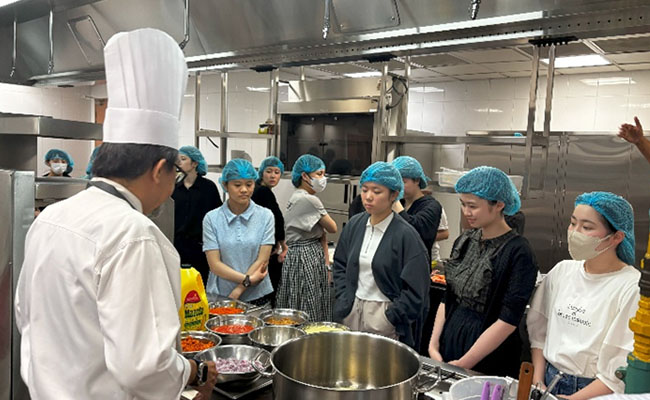 On 27 February 2025, UOW Malaysia welcomed 30 students and 3 teachers from Bunkyo University, Japan as part of a mobility program. The workshop, led by Chef Hamir Hamirudin bin Nazir at School of Hospitality, Tourism and Culinary Arts, UOW Malaysia, introduced the Japanese students to the diverse flavours of Malaysian cuisine through hands-on cooking sessions. Participants learned to prepare traditional Malaysian dishes such as Nasi Dagang, Gulai Ikan Salmon, and Gulai Daging.