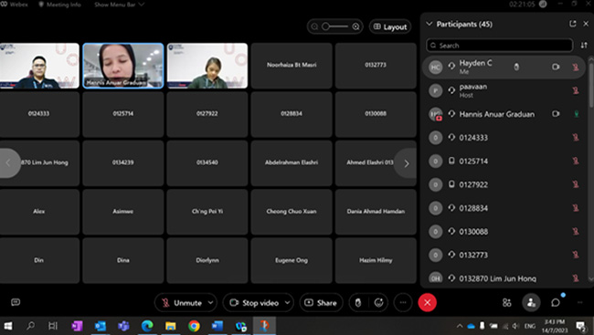 The Student & Alumni Centre (SAC) in collaboration with Graduan, a leading career resource platform in Malaysia, took a proactive step in preparing students of UOW Malaysia for their upcoming internship by organising an online seminar on Webex from 2.30 pm to 5.30 pm on July 14, 2023.