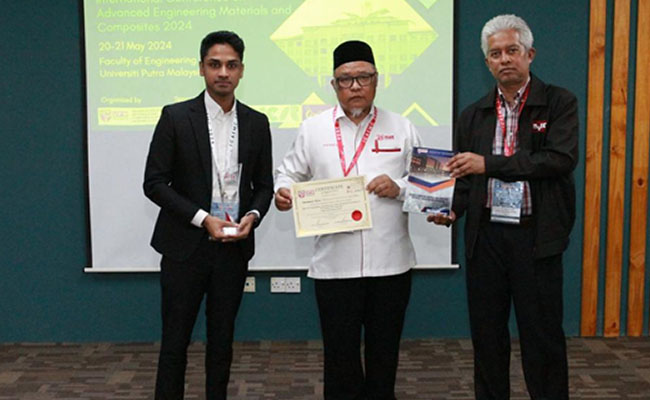 MSc student Gautheman Kurup, from the School of Engineering, University of Wollongong Malaysia emerged top presenter at the International Conference on Advanced Engineering Materials & Composites (ICAEMC) organised by University Putra Malaysia (UPM).
