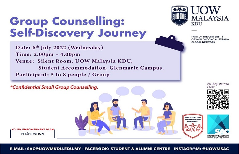 As self-discovery is an important step in living an authentic life, the Career and Counselling Unit, Student and Alumni Centre saw it fit to organise a confidential Group Counselling event to help the students understand themselves better in their different stages of development. “Self-Discovery Journey” was held on the 6th of July 2022 to better equip the students with the knowledge of self-awareness, the first step in self-discovery. The event allowed students to explore their personal interests as well as their hopes, aspirations, and dreams for the future. This will eventually open the door for the students to learn more on self-knowledge which will enable them to guide themselves towards situations and experiences in which they will thrive.