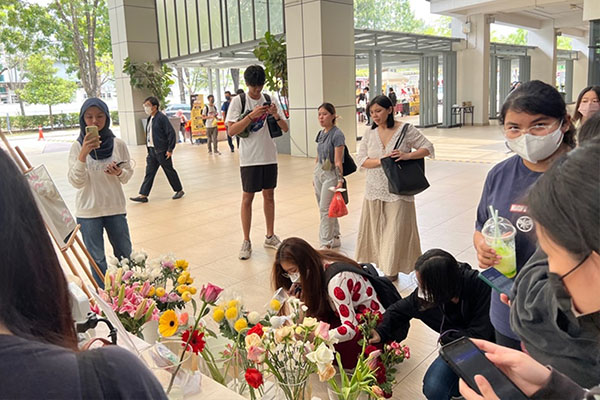 Since classes were resuming entirely physically, the event attracted a crowd of students, staff, and lecturers who excitedly checked out the vendors at the respective booths. More people started coming to check out the event during lunch hour as the event was open to the public. Many students were spotted playing activities such as the kites and writing their affirmation notes on the Happiness Board organised by UniBuddy. Students were seen singing a song by themselves and joined by another group of students a little later. The vendors also enjoyed the moment as the music kept the lively atmosphere going.