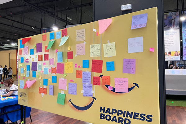 On the 20th of March, UOW Malaysia’s Student and Alumni Centre organised an International Happiness Day event. Over fifteen vendors from Klang Valley were invited to sell various food, beverage, fashion, and accessories. UniBuddy also provided four fun activities for students to play and have fun with, such as ‘Let’s Sing A Song,’ ‘Let’s Fly the Kite with Us!’, ‘Let’s Play!’ and ‘Leave Your Message.’ The event began at approximately 10.00 am after all the vendors had done setting up their booths.