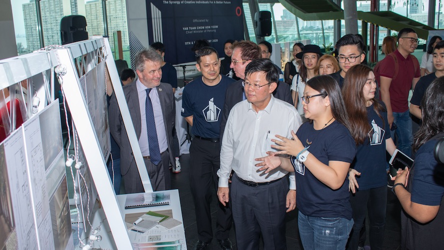 Chief Minister of Penang, YAB Tuan Chow Kon Yeow, UOW Malaysia KDU faculty members, VIP visitors, parents and students walked among the numerous displays – mounted on large poster boards affixed to wooden panels – of the students’ works based on project briefs involving, among others, the creation of creative and 3D visualisation models of reimagined urban planning, with inspiration from consumer trends, technology and aesthetics evident in the works. The clear displays of creativity were supplemented by detailed depictions such as layout plans and axonometric diagrams, all indications that students have successfully carried out deep-dive research into the subject matter of their assigned projects.