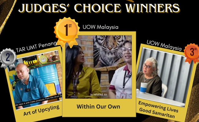 The second season of “We.R.Wira” saw participation from five universities, including UOW Malaysia, submitting 16 impressive video entries. SCCA’s talented team, led by lecturer Murina Pawanteh, contributed five videos, with their entry “Within Our Own” clinching 1st place, while “Empowering Lives: Good Samaritan Home” earned 3rd.