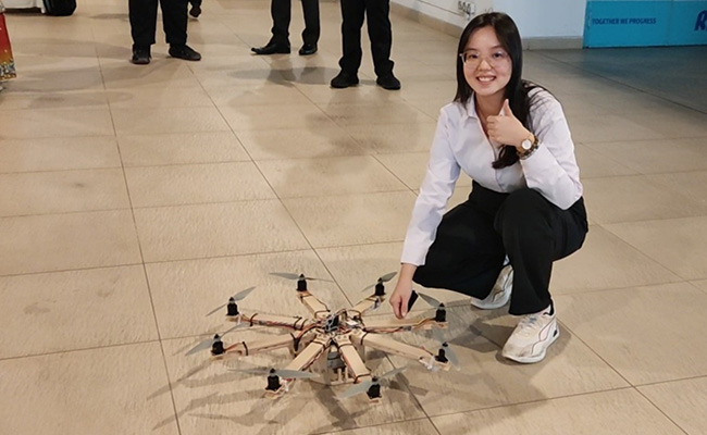 Joyce’s innovation on sustainable drone structure which secured 1st Place in the competition.