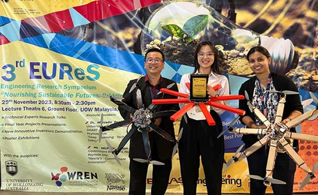 Thong Shu Hui, Joyce, a Mechanical Engineering student from UOW Malaysia School of Engineering, became the champion in the 2023 Integrated Design Project Short Video Competition’s – Mechanical Category, organized by Engineering Education Technical Division, IEM. Her groundbreaking project, titled “Design and Development of Sustainable and Lightweight Unmanned Aerial Vehicle (Drone) Structure,” showcased a remarkable fusion of innovation and sustainability.