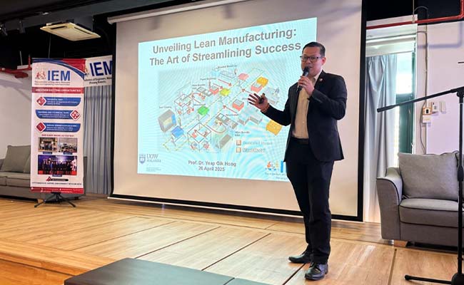 Professor Dr Yeap delivered “Unveiling Lean Manufacturing: The Art of Streamlining Success,” providing deep insights into Lean Manufacturing principles, its historical roots in the Toyota Production System, and practical tools for continuous improvement and waste elimination in industry practices.