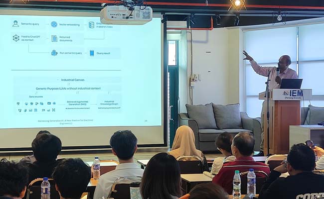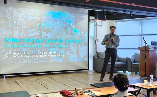 Associate Professor Dr Lee presented “Enhancing Automation with IoT: Bridging Technology and Intelligence,” exploring the integration of Digital Twining, Internet of Things (IoT) and Artificial Intelligence (AI) in automation, real-world applications such as predictive maintenance and process optimisation, and the future potential of smart, interconnected systems.