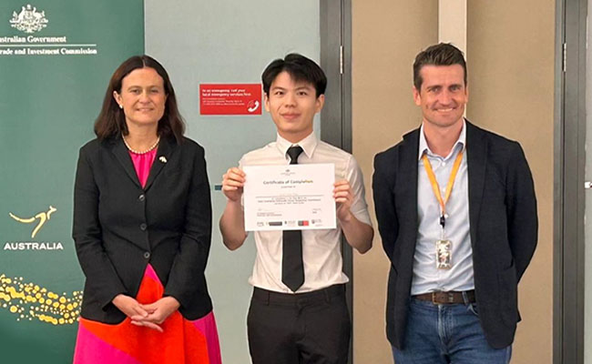 Lim Jun Zhe received his award from HE Danielle Heinecke and Peter Murray.