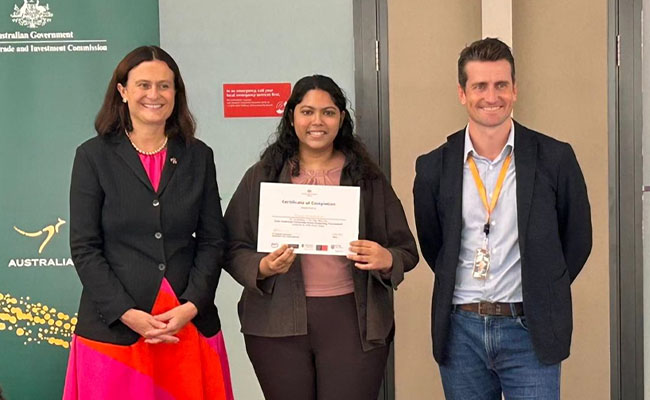 Thuvia Sreedharan received his award from HE Danielle Heinecke and Peter Murray.