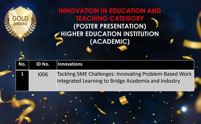 The winning project introduced an innovative Problem-Based Work-Integrated Learning (PBWIL) framework, integrating three educational models—PBWIL, the Kirkpatrick Model, and Revans’ Action Learning System. The model enables postgraduate students to collaborate with Small and Medium Enterprises (SMEs) to solve real-world challenges, thereby enhancing their employability. The PBWIL model promotes hands-on problem-solving, the Kirkpatrick Model evaluates learning effectiveness, and Revans’ Action Learning System fosters iterative learning through action, reflection, and feedback, benefiting both SMEs and students and bridging the gap between academia and industry.